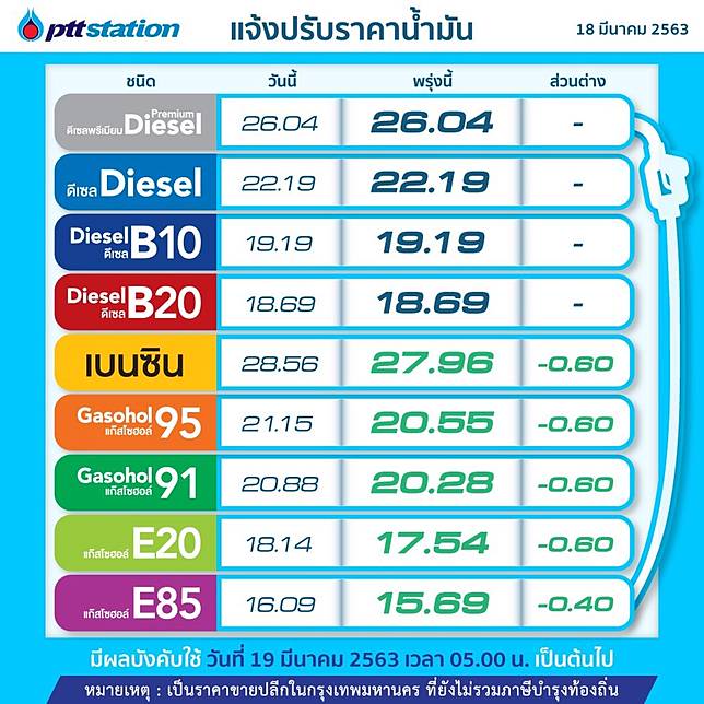 ราคาน้ำมันวันนี้ 2565 ปตท! วันที่ 9 มีนาคม 2565 ptt station ปรับราคาขายปลีก .